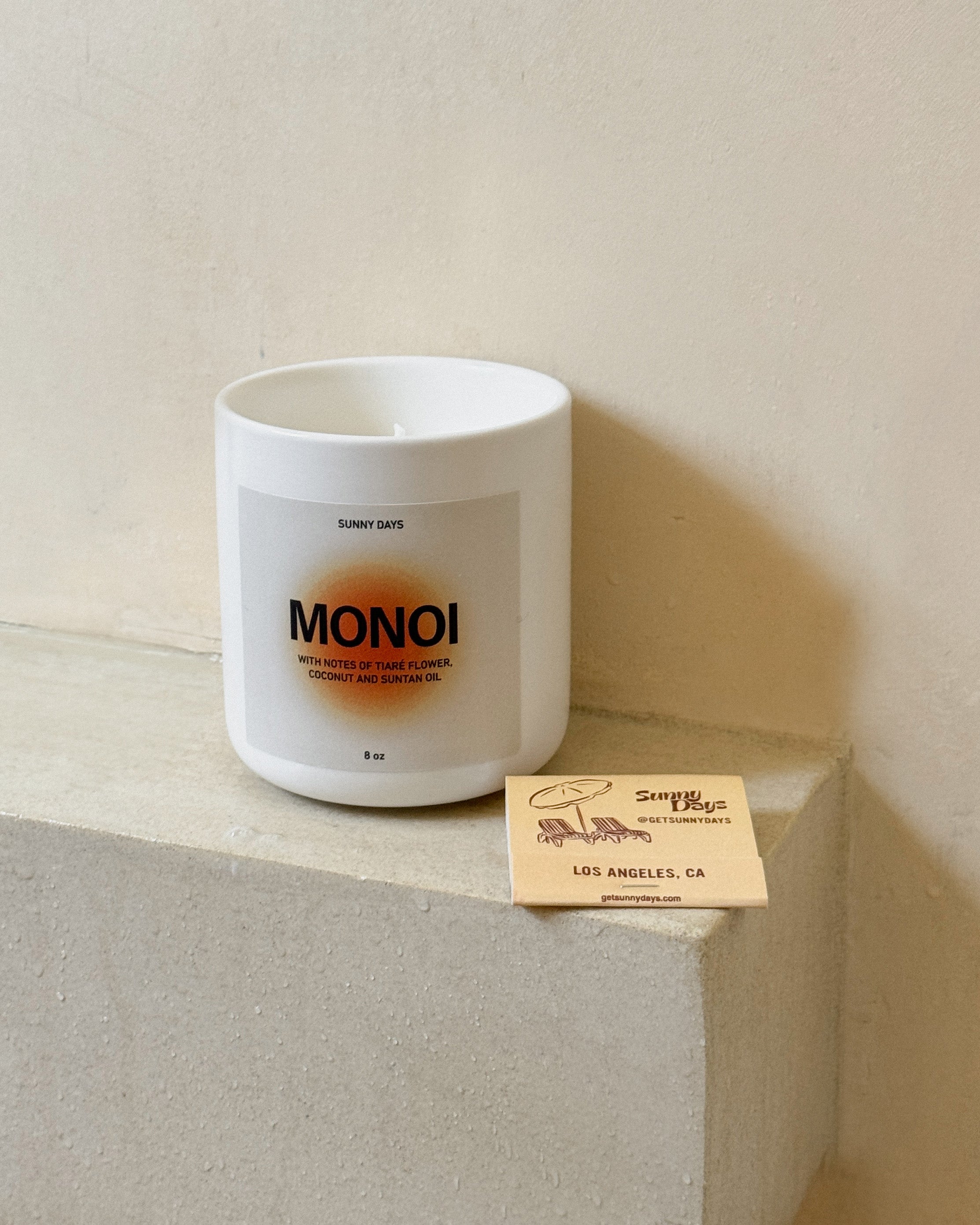 With each order of our Monoi scented candle, you'll receive a limited edition Sunny Days matchbox—while supplies last.